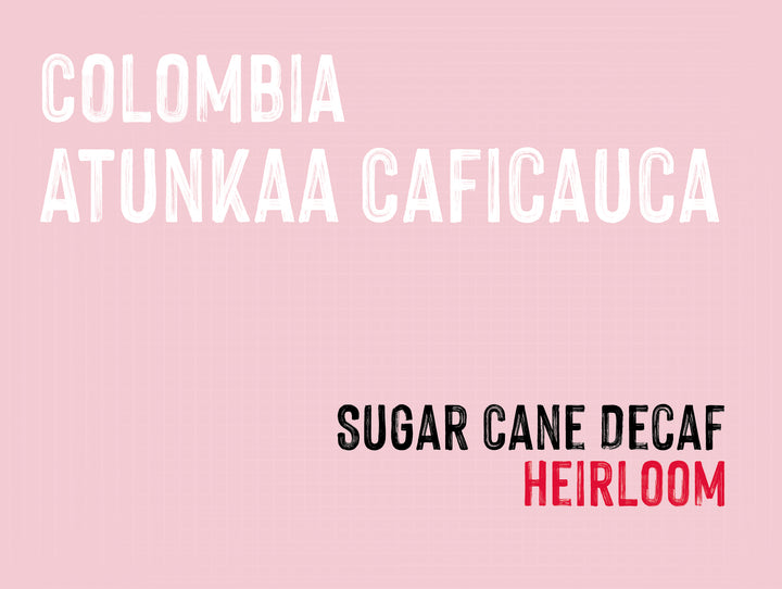 "Atunkaa" in the Wayuu dialect describes the state of sleeping or dreaming. These sugarcane decaf lots are produced by our community of farmers from the regions of Cauca, Caldas & Tolima. They are processed with care to preserve the natural sweetness and complexity of their varieties. Caficauca supplier: The "Cooperativa de Caficultores del Cauca" - Caficauca - was created in 1961 with the purpose of providing fair and easy market access for growers. It currently has over 3,000 associates, with the average farm size of 1.6Ha The Regional The coffee that has been carefully selected by Siruma is composed of an average of 85 growers per lot, where their coffee is fully/wash processed with a fermentation time ranging from 16-19 hours, to then go into parabolic solar dryers that take an average time of 10 days to dry the coffee until target moisture is achieved. The coffee comes from Piendam, Cajibio and Morales, which is commonly known as the Tabletop of Cauca. These towns provide an excellent elevation for coffee of 1,800-2,050masl, with very fertile land and a strong coffee economy. However, this strong coffee economy has come at a big expense; this area has a big history of armed conflict that started in the 1970s, implying most land owners were forced to plant illicit crops. Coffee has been a parallel economy that has been in a constant clash with the illicit crops.