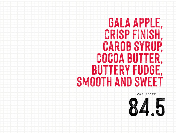 Cocoa butter, carob syrup, buttery fudge, Gala apple, smooth and sweet, crisp finish