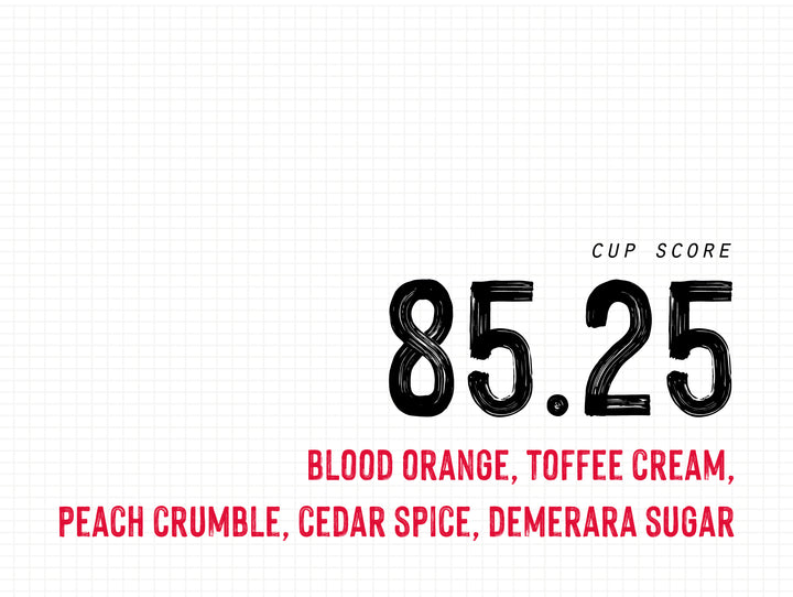 Blood orange, toffee cream, peach crumble, cedar spice, demerara sugar |