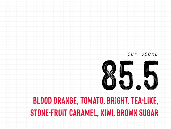 Blood orange, tomato, bright, tea-like, stone-fruit caramel, kiwi, brown sugar |