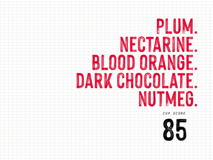 Plum, nectarine, blood orange, dark chocolate, nutmeg