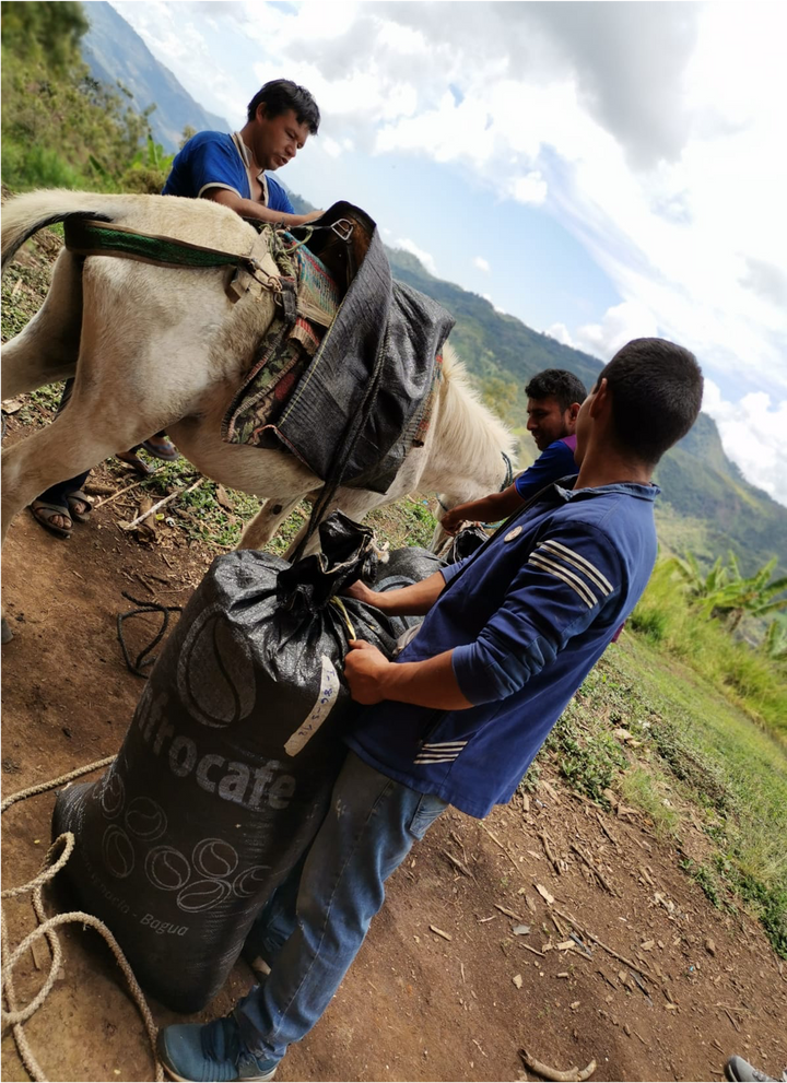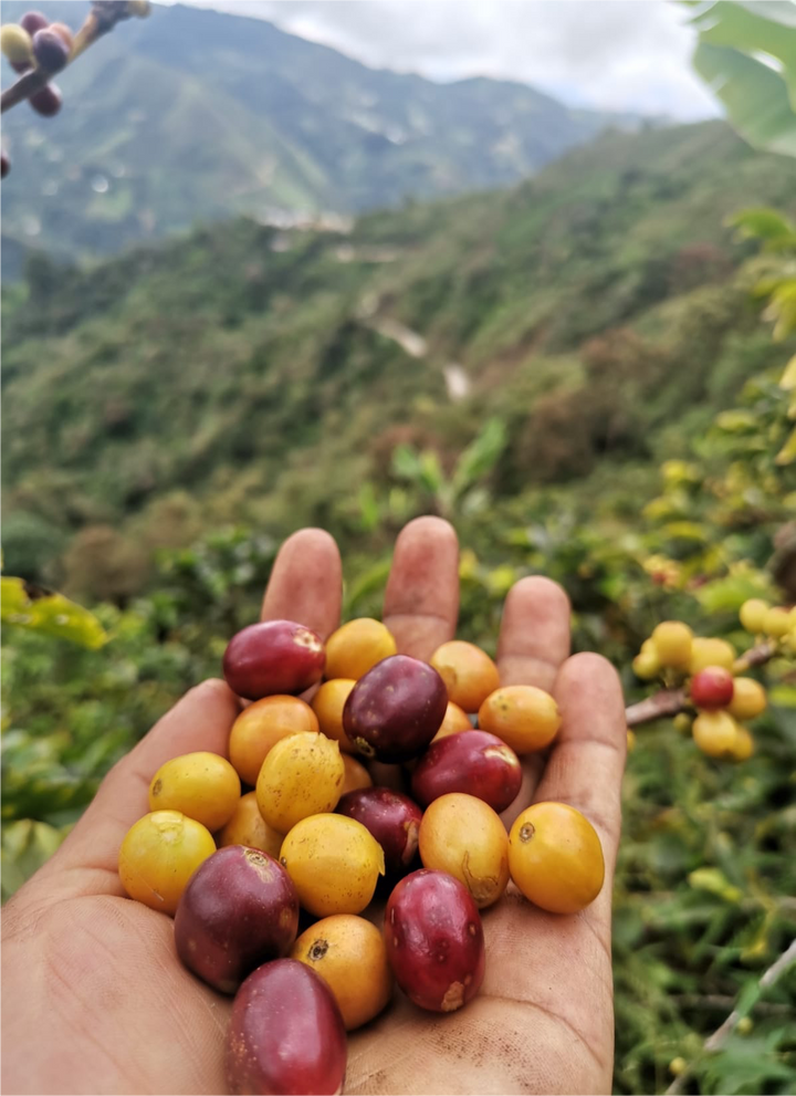 The Marin family—four brothers (Felipe, Joel, Aurelio, and Moises) and their father, Silvestre—grow coffee at 1,850 masl in La Palma, Jaén. Joel bought parcels there in 2021; the family lives locally and hires pickers during harvest. Plantings include Catuai, Marshel, and Geisha, with current holdings of Felipe 3 ha, Joel 3 ha, Aurelio 3 ha, and Silvestre 5 ha. Given the colder, wetter micro-region this season, they rest cherries for about 36 hours before depulping and ferment for a further ~36 hours. They monitor drying with moisture meters and thermometers and, in 2025, installed two mechanical dryers at home to finish parchment to ~11% moisture after an initial spell on raised beds. They fertilise three times per year—mostly organic—and run soil analyses through the Specialty Plus project. With seven years of cultivation, the family has modernised layout and varietal selection compared with previous generations and maintains minimal shade to maximise sun exposure. The family works with Falcon Coffees Peru (FCP) via its Specialty Plus project. FCP, established in 2019, buys parchment directly at the farm gate with quality-differentiated premiums and full financial traceability; since 2022 it has also enabled certified cooperative exports. FCP operates warehouses in Jaén and Moyobamba with a 20+ person team working alongside 500+ farmers and eight cooperatives. It identifies and supports specialty producers through digital baseline surveys (Copera app), training, and agronomy support, and pays premiums above the local price according to delivered cup quality. Specialty Plus has delivered an average +1.32-point score gain to date (peak 88), with 107 producers enrolled.