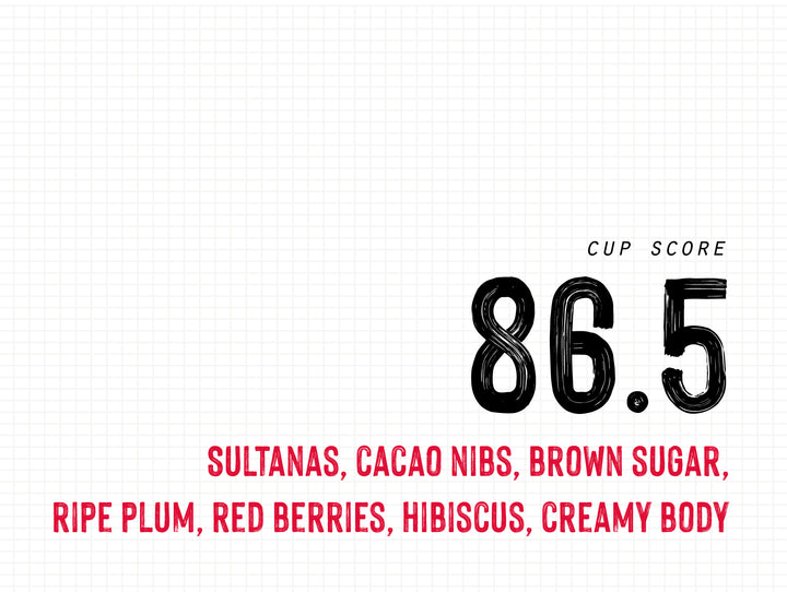 Sultanas, cacao nibs, brown sugar, ripe plum, red berries, hibiscus, creamy body |
